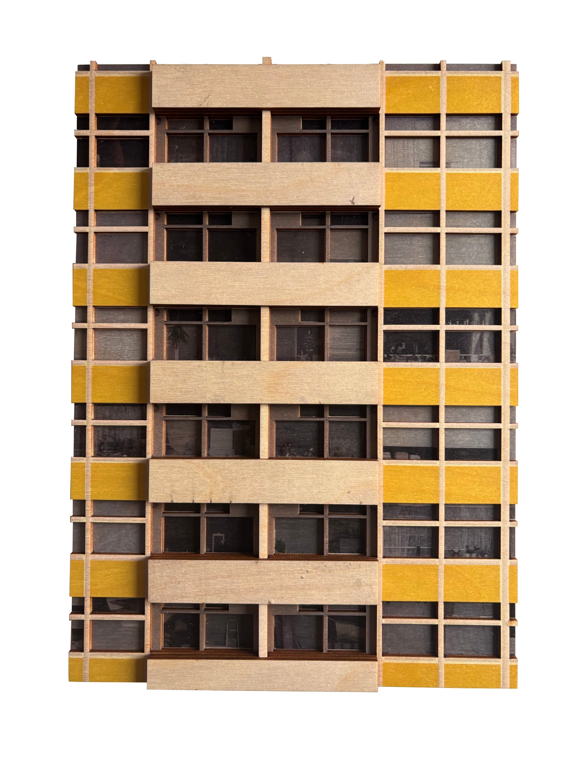 3D plywood relief of Great Arthur House (part of the Golden Lanes Estate). Photos of the estate have been UV printed onto the ply. Limited edition of 20 21x30cm